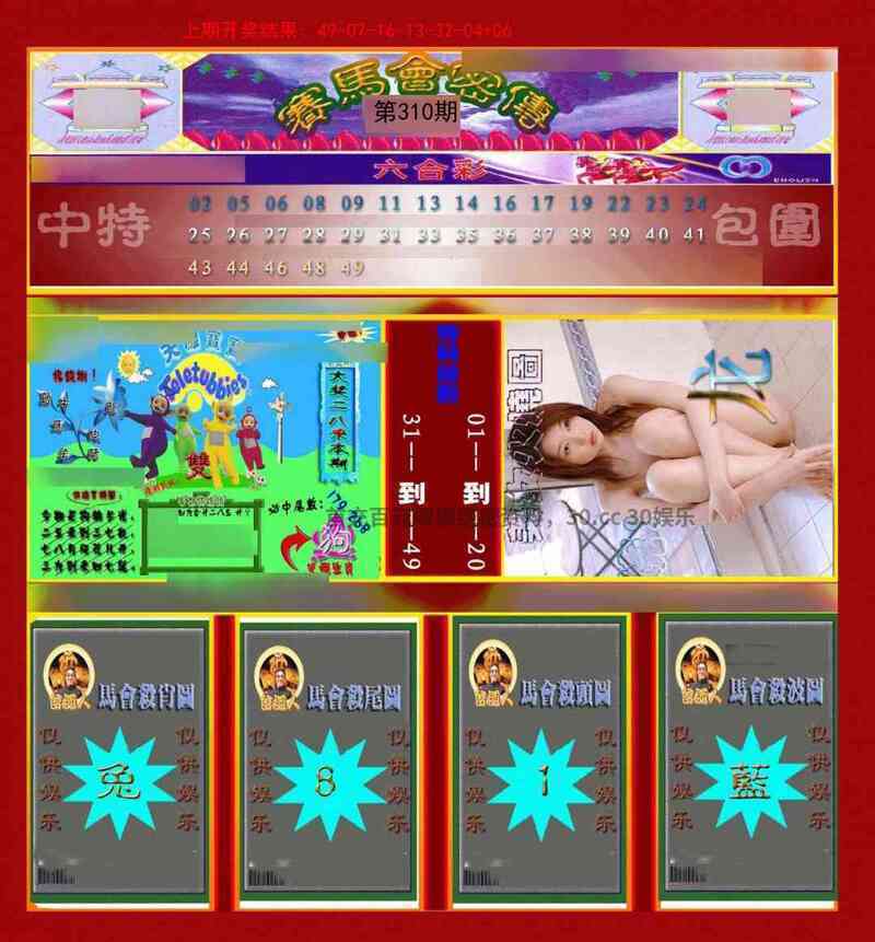 310期一字記曰:【暮】鶴壽千歲,松柏無疆,暮齡尚可翅開張,不怕年老,無謂風霜,彌堅之勇話鏗鏘